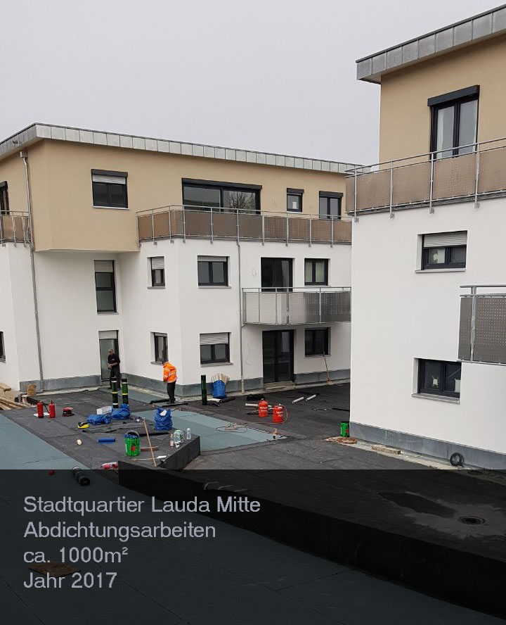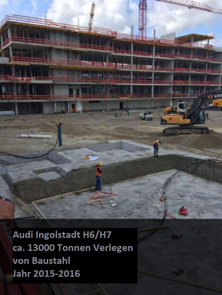 Referenzen Audi Ingolstadt H6/H7 – ca. 13000 Tonnen Verlegen von Baustahl – Jahr 2015-2016 Maggi Singen – Abdichtungsarbeiten ca. 3500qm – Jahr 2017 Stadtquartier Lauda Mitte – Abdichtungsarbeiten ca. 1000qm – Jahr 2017 Riedel Bau Schweinfurt – Abdichtungsarbeiten ca. 900qm – Jahr 2018 TUM Garching 2019 München Bvh: Schrobenhausenerstr in München cca 3000 qm in 2019 Bvh: BMW Reisacher in Ausburg cca 9000 qm in 2019 Bvh: Richter und Frenzel in Aschaffenburg cca 2000 qm in 2021